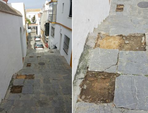 Desde el Ayuntamiento se quieren denunciar actos vandálicos que se han llevado a cabo en los últimos días en diversos puntos de la ciudad. Uno de ellos ha sido la sustracción de losas de tarifa de la escalerilla de la calle Almonte.