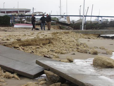 El Ayuntamiento ha remitido a la Subdelegación del Gobierno una primera evaluación de los daños ocasionados en la localidad por la borrasca Emma, en la que destaca la especial incidencia que ha tenido en el litoral, del que se ha perdido un 50 por ciento de la arena de la zona de baños, dejando sin protección estructuras y colectores.