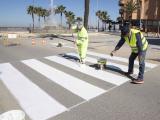 Hoy se han iniciado los trabajos de repintado señalización horizontal de los distintos pasos de peatones de la localidad.